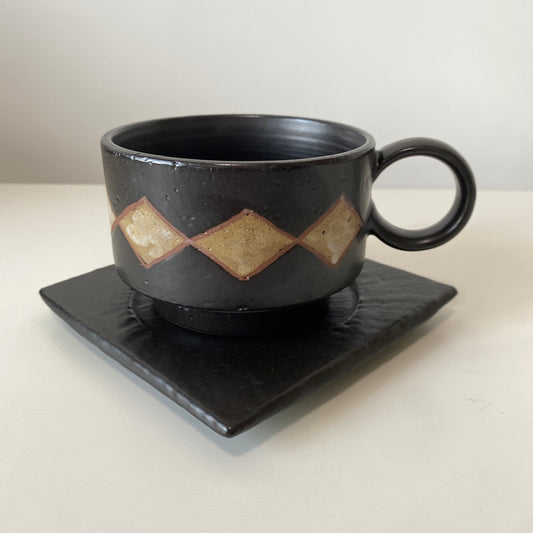 Handmade Black Ceramic Coffee Cup and Saucer Set | Wabi-Sabi Style
