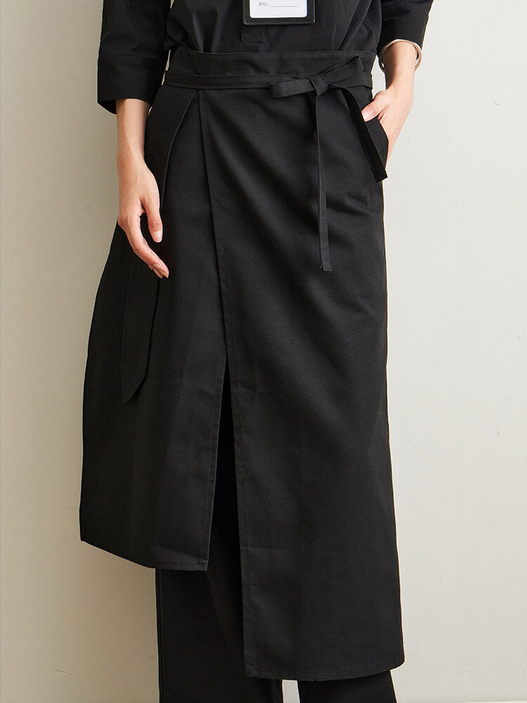 This professional black half apron is perfect for work environments requiring both style and functionality. Designed for comfort and durability, it provides excellent coverage and protection while maintaining a sleek, professional appearance.